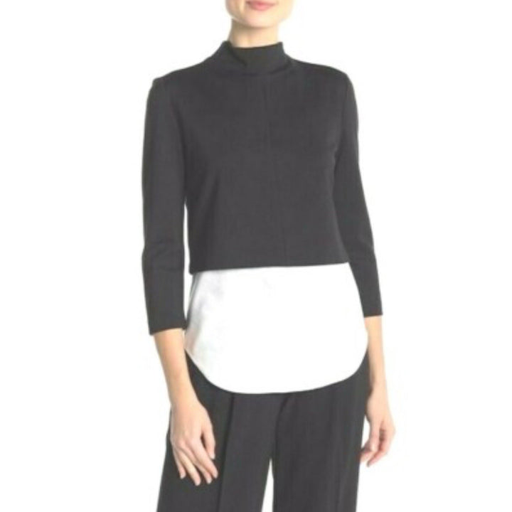 Theory Women’s Gracila Knit Shirttail Top – Mockneck Black & White, Size Medium