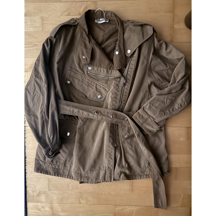 VICTORIA BECKHAM Belted Trench Jacket Brown Khaki Bi-color US 8
