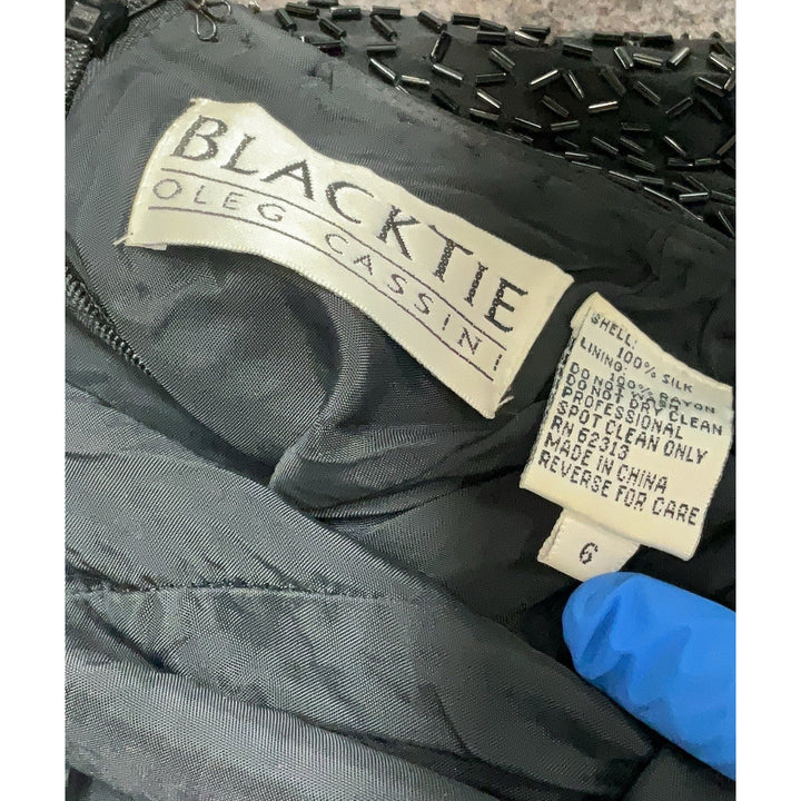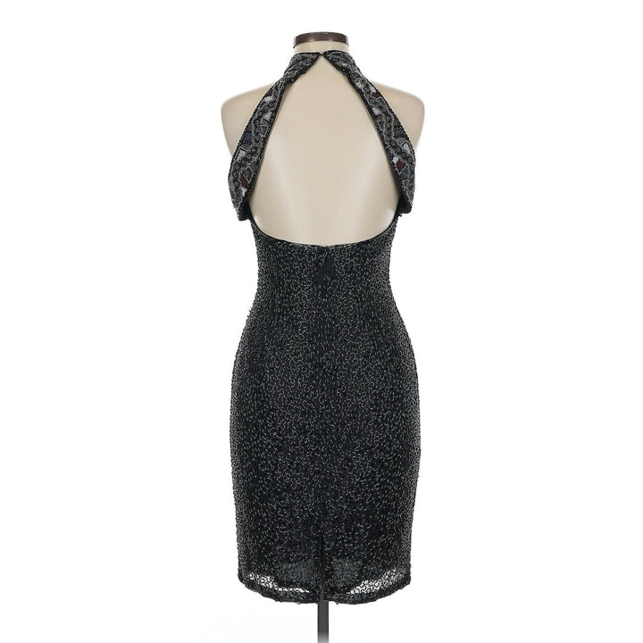 Vintage Oleg Cassin Women's i Black Sequin Silk Halter Beaded Mini Dress, Size 6