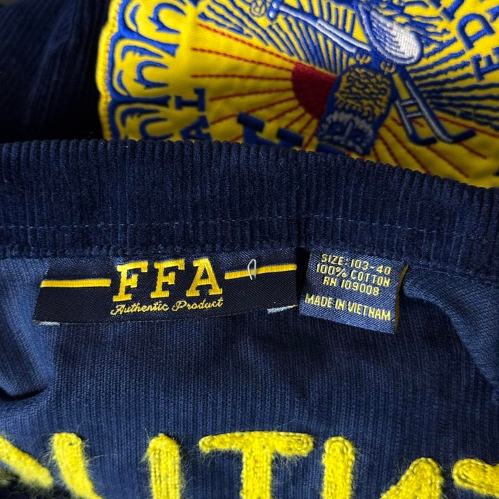 Authentic 90s navy blue corduroy jacket featuring FFA logo and “Dixie Heights Kentucky” embroidery. Men’s size 40. Vintage varsity-inspired outerwear with classic collegiate style and retro charm — perfect for collectors or casual wear.