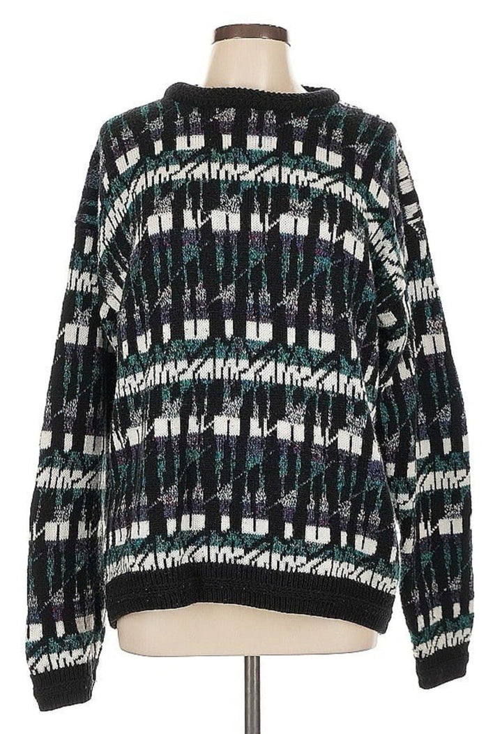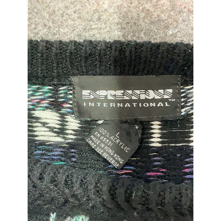 VTG Expressions International Women's Abstract Pattern Striped Sweater 3D Coogi Style Large