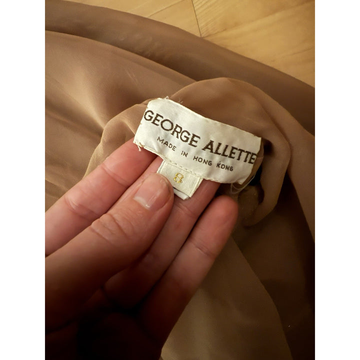 The VTG George Allette Tan Sheer Sequin Beaded Tunic Long Sleeve Top is a stylish and elegant blouse made from silk. With a unique tunic style and intricate beaded accents, this top is perfect for women looking to add a touch of glamour to their wardrobe. The sheer material adds a touch of sophistication, while the brown color gives it a versatile and timeless appeal. This top is a size 8, making it a flattering and comfortable option for regular-sized women. Perfect for special occasions or adding a touch of luxury to any outfit.