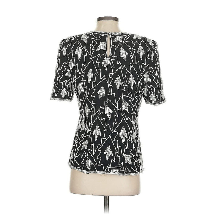 VTG Laurence Kazar Women’s Beaded Silk Top Lightning Bolt Pearl Embellished Size Small