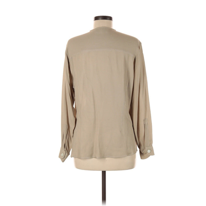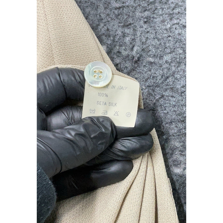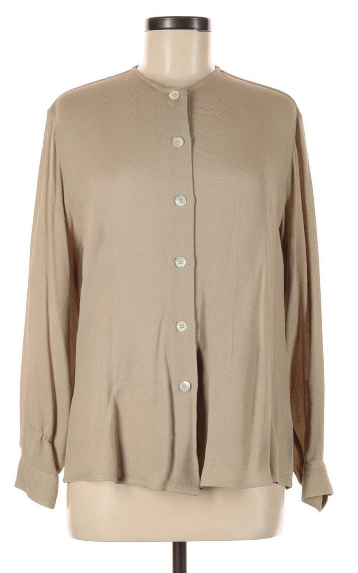 VTG Noidiasolo Women's Knit Silk Collarless Blouse – Beige Tan, Size 44 / Medium