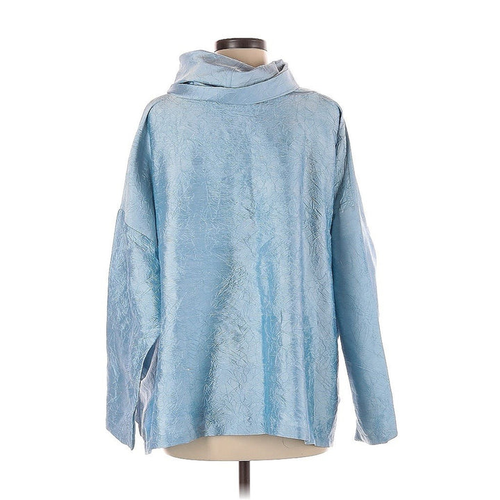 Embrace effortless elegance with this vintage Strategies oversized poncho top, crafted from luxurious silk in a striking ice blue hue. Designed with a chic mock neck and an easy, flowy silhouette, this versatile piece drapes beautifully for a refined yet relaxed look.