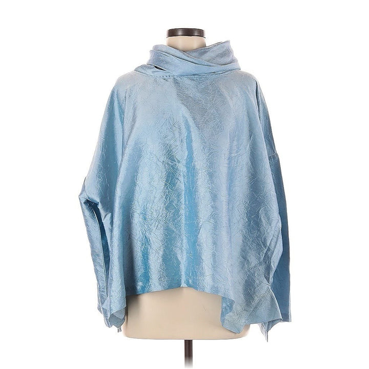 VTG Strategies Women’s Ice Blue Silk Mockneck Oversized Poncho Top – One Size
