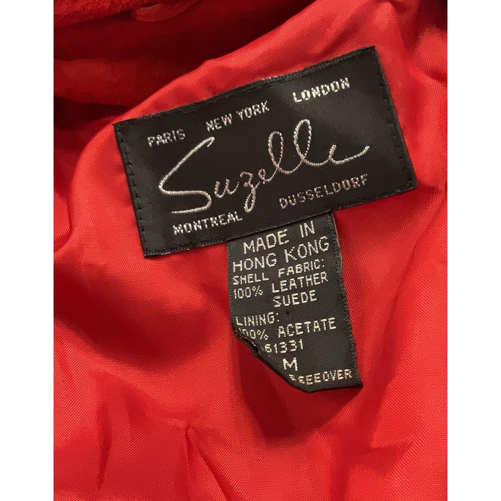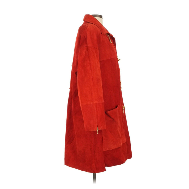 VTG suzelle Women's Red Leather Suede Long Swing Coat Gold Toggles Medium