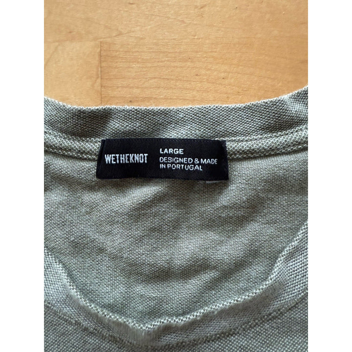 Stay effortlessly cool with the Wetheknot Short Sleeve Knot Crewneck T-Shirt in grey, size Large. Designed with a modern twist-knot detail at the front, this tee blends casual comfort with contemporary style. Made from soft, breathable fabric, it's a versatile staple for everyday wear—perfect for pairing with jeans, skirts, or shorts for a relaxed yet polished look.